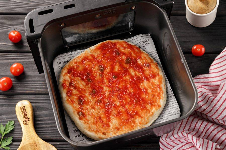 Смажьте основу любым любимым соусом.