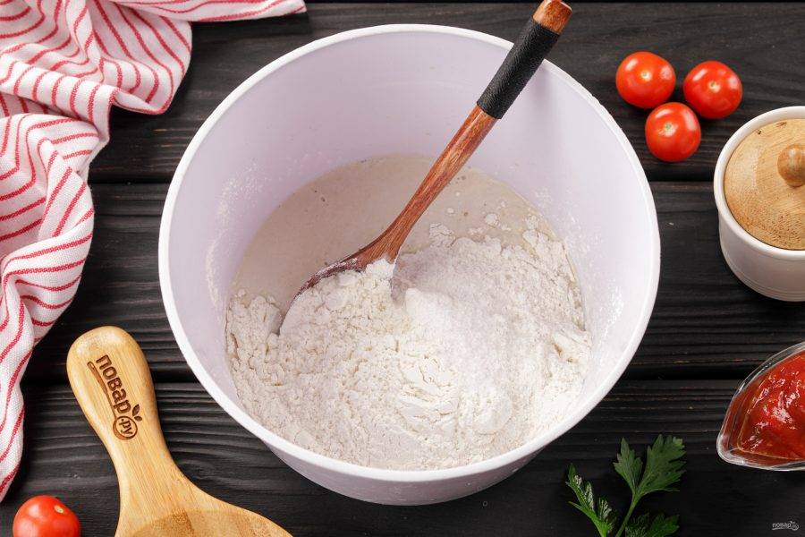 Добавьте муку и соль.