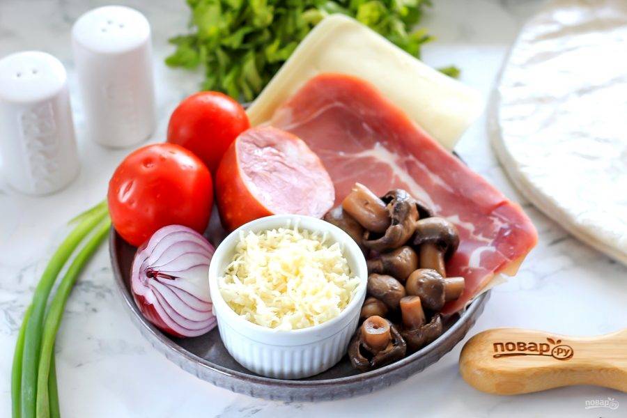 Подготовьте указанные ингредиенты. Прошутто и ветчину можно использовать любого сорта.