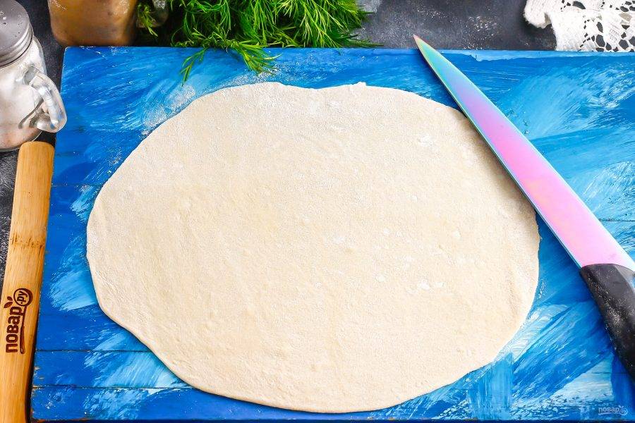 Разделите тесто на две части, раскатайте каждую в тонкий овальный или прямоугольный пласт.