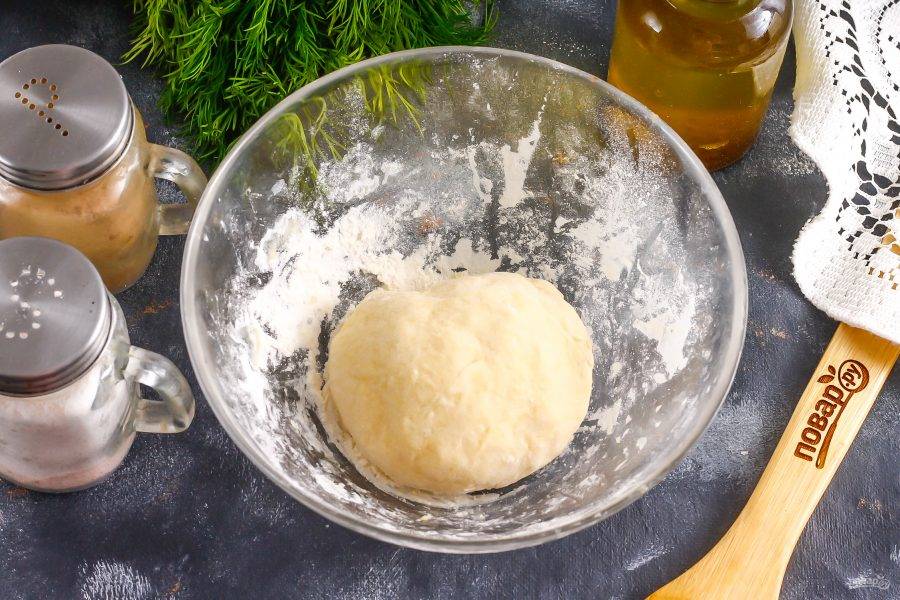 Вымешайте все, создавая плотное тесто. Накройте тесто пищевой пленкой и оставьте на 20 минут для активации клейковины.
