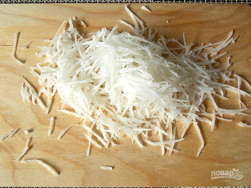 Особенно часто дайкон (японскую редьку) используют для салатов. Остальные же блюда из него не так популярны. Оцените рецепт блюда, как приготовить салат с дайконом, огурцом и морковью.