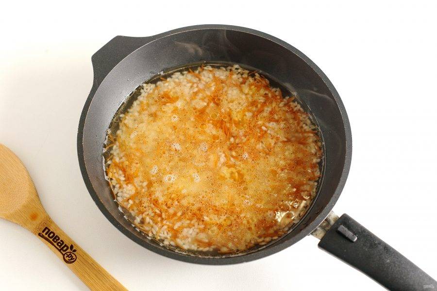 Заливаем рис водой, чтобы она его только покрыла (главное, не перелить, иначе рис не получится). Варим до выкипания воды. Посолите по вкусу.