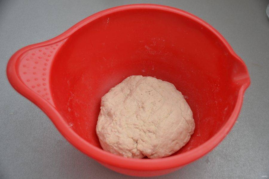 Замесите тесто. Накройте пищевой пленкой и оставьте на 15 минут.