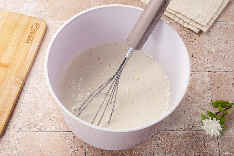 Для приготовления тесто возьмите миксер или блендер. Так тесто у вас получится более однородное, без комочков и процесс будет быстрее. Сначала взбейте яйца с сахаром.