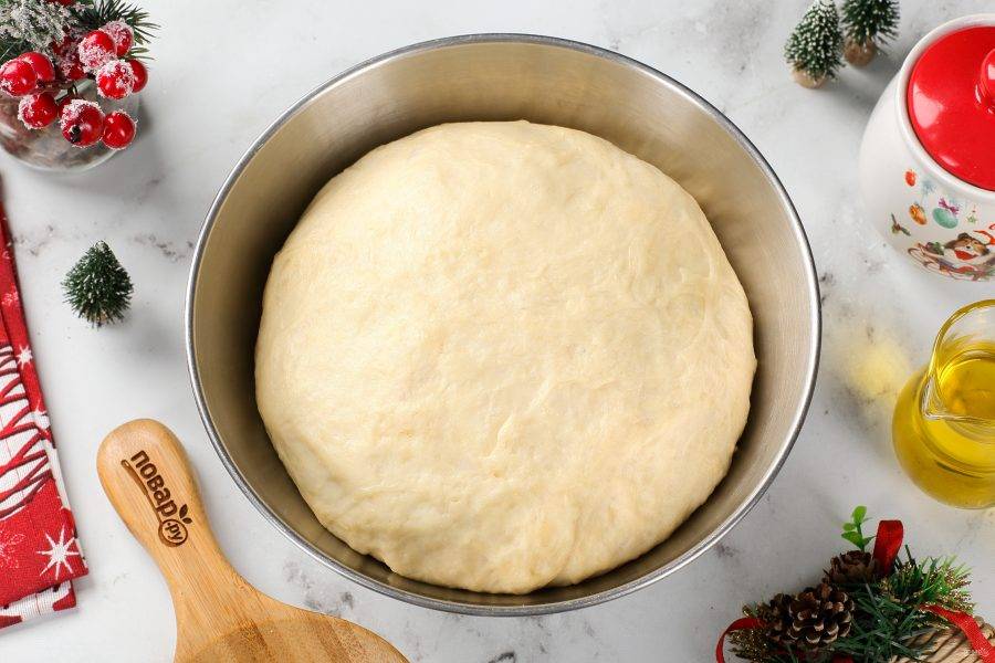 Подошедшее тесто необходимо обмять и дать ему подняться ещё раз, оставив примерно на час.
