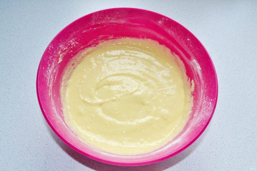 Всыпьте просеянную муку и соду. Количество муки указать сложно, добавляйте небольшими порциями.