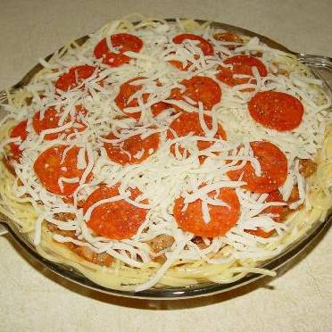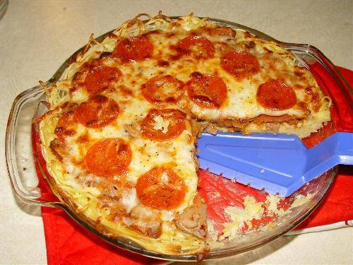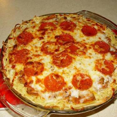 Оригинальный рецепт итальянской пиццы с основой из спагетти.