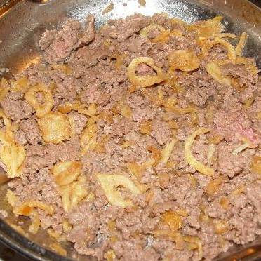 Выкладываем говядину с луком на макароны, смешиваем с сыром.