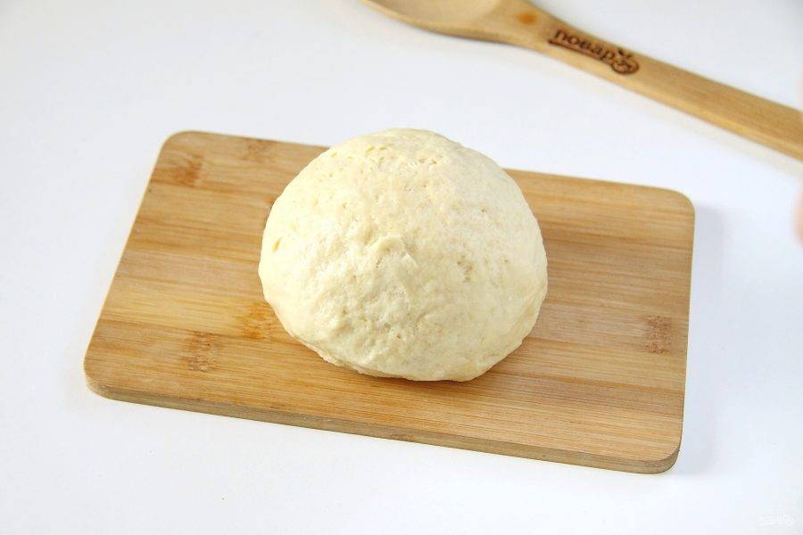 Перемешайте все ложкой, затем руками замесите мягкое тесто. Если необходимо, то добавьте в процессе еще немного муки. Соберите тесто в шар, заверните в пищевую пленку и уберите в холодильник на 30 минут.