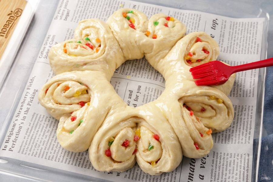 Повторите аналогичные действия со всеми сегментами теста. Прикройте будущий пирог пищевой пленкой или легким полотенцем и оставьте для расстойки примерно на 20 минут.