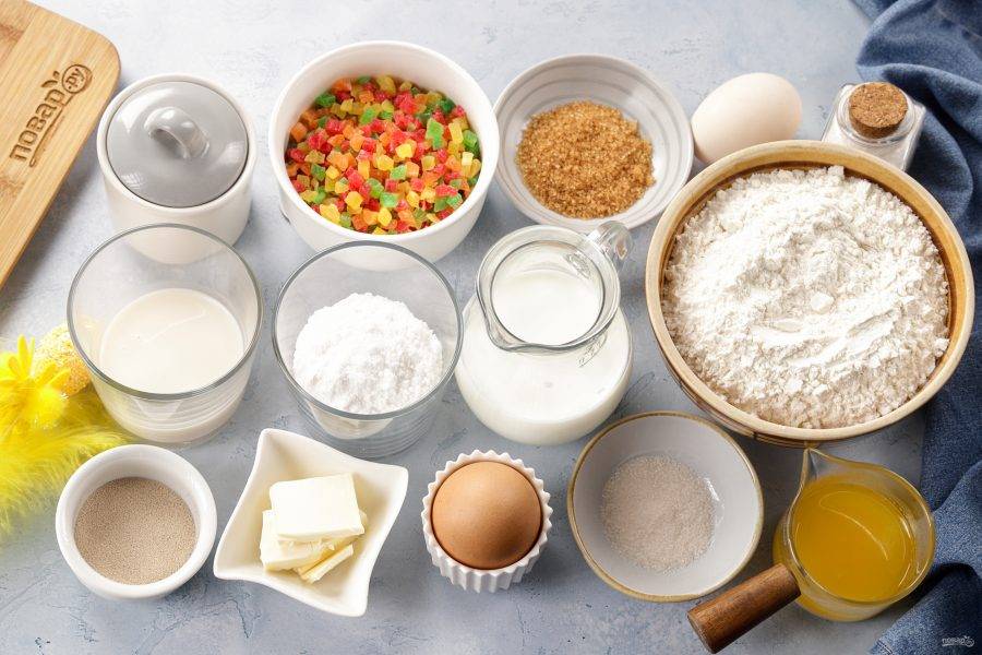 Подготовьте все ингредиенты. Ряженку используйте комнатной температуры. Молоко слегка подогрейте.
