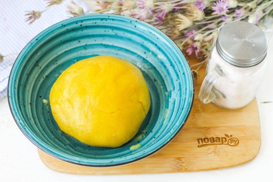 Затем извлеките и выложите в форму, распределите по ней, выходя и на бортики.