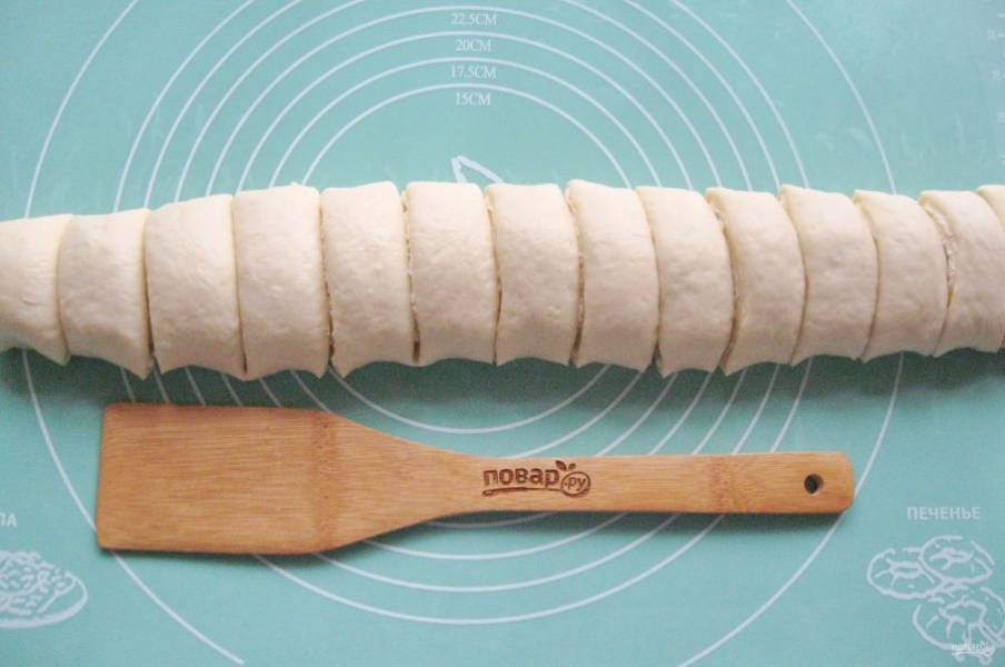 Каждую булочку округлите и выложите в форму для выпечки.