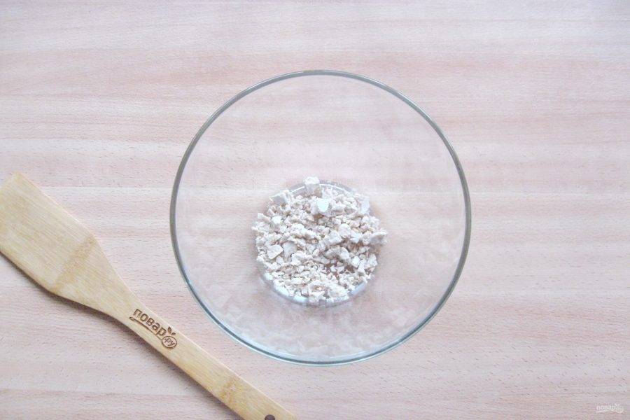 В миску выложите свежие дрожжи.