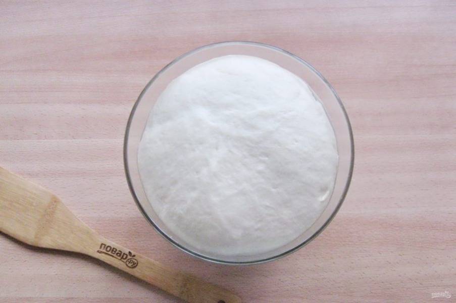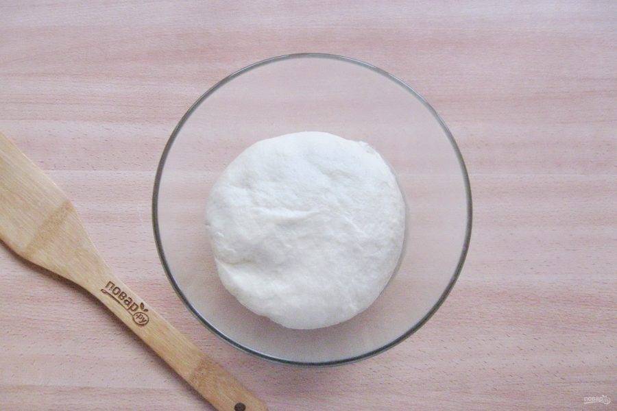 Замесите достаточно крутое, но мягкое, эластичное тесто. Накройте его пищевой пленкой или полотенцем и отправьте в теплое место.