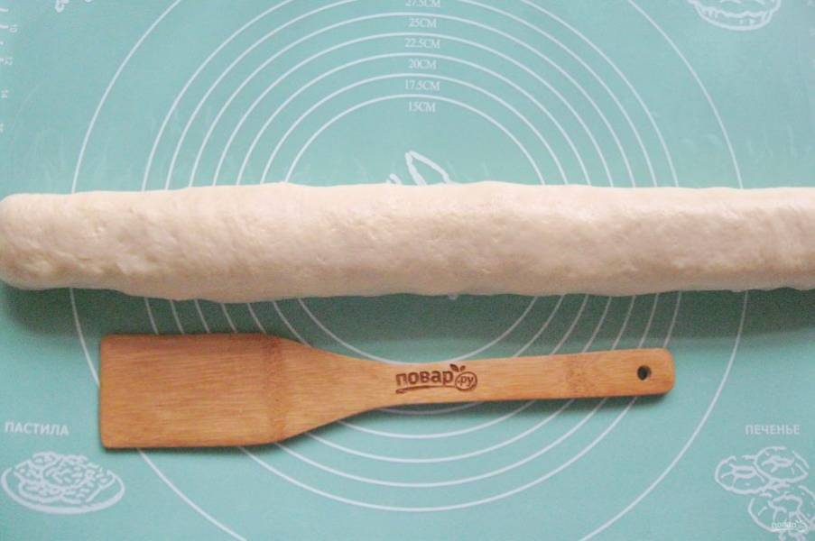 Тесто с творогом сверните рулетом.