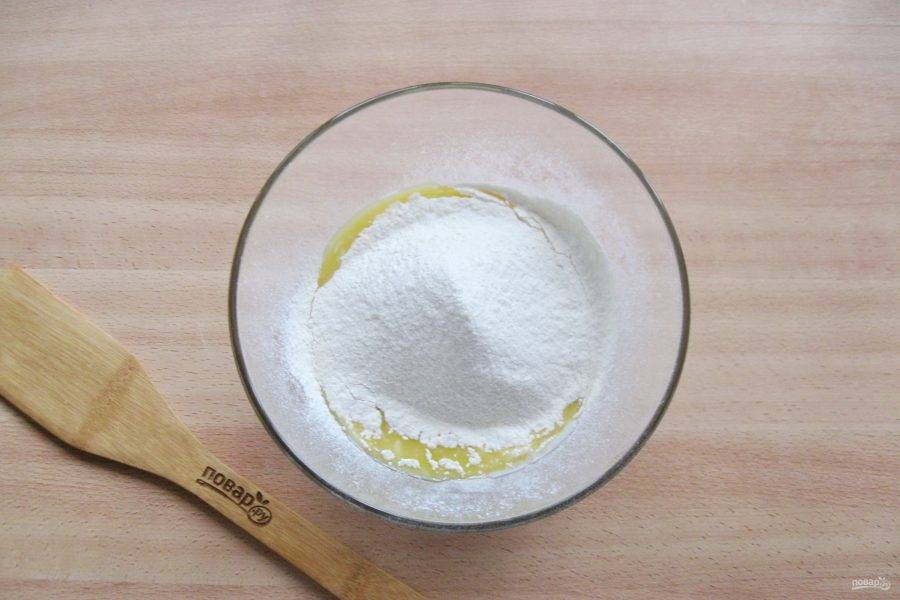Постепенно добавьте просеянную муку.