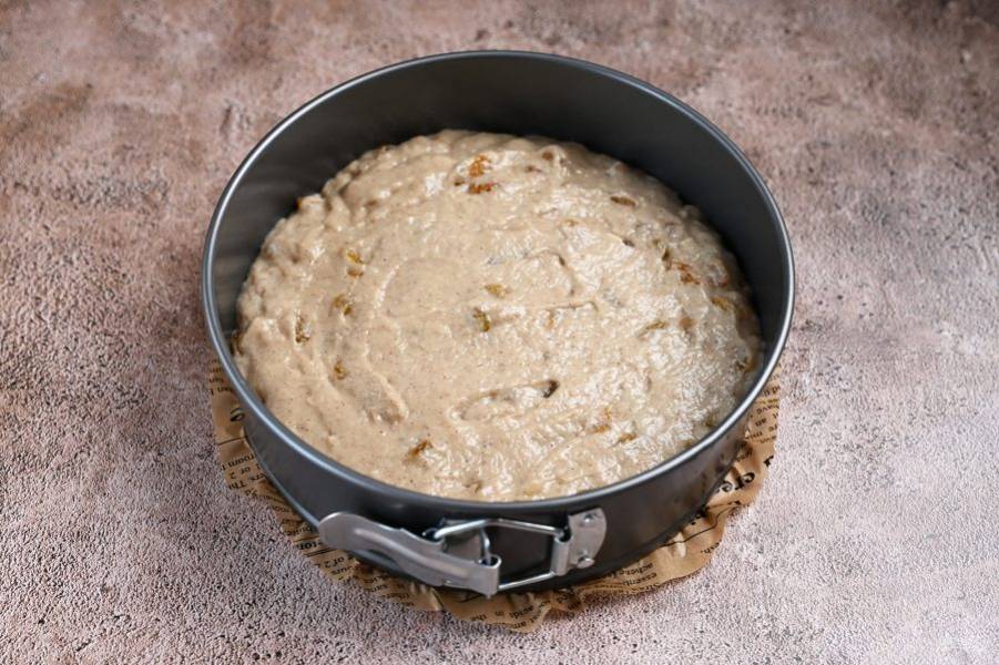 Форму для выпекания застелите пергаментом для выпечки и выложите все тесто. Затем отправьте заполненную форму в заранее разогретую до 180 градусов духовку на 35-40 минут.