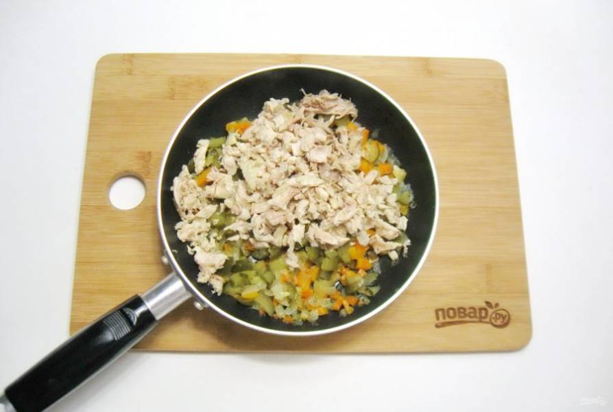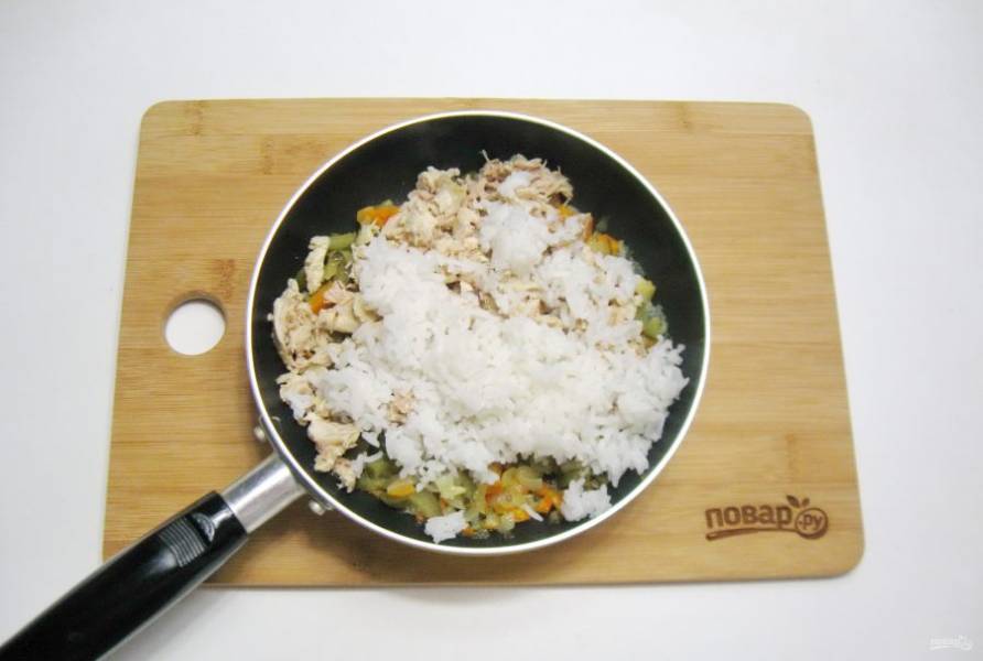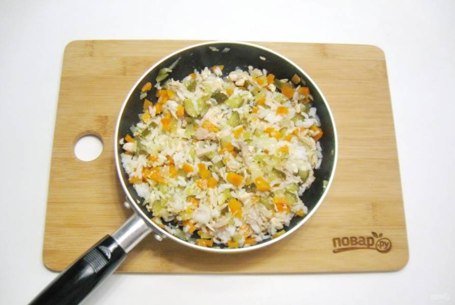 Начинку посолите, поперчите по вкусу и перемешайте.