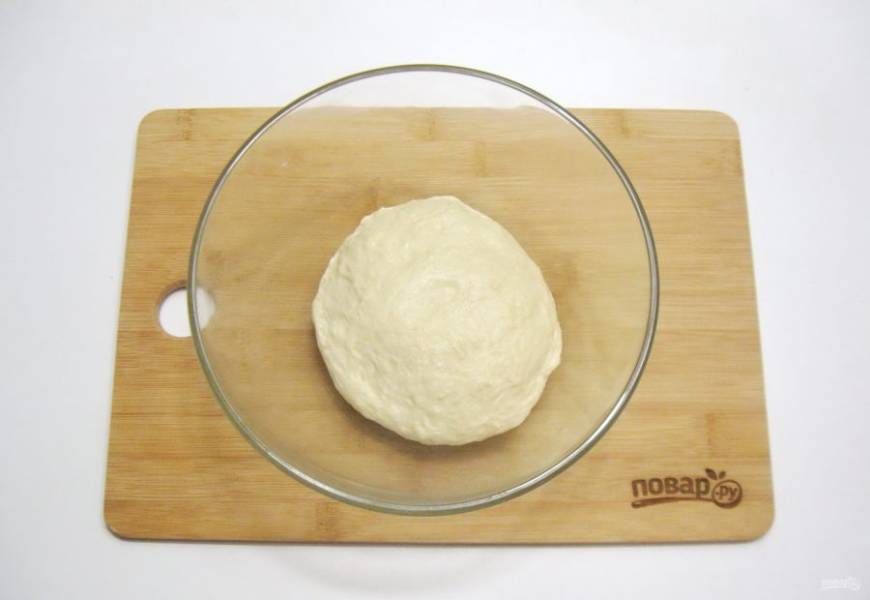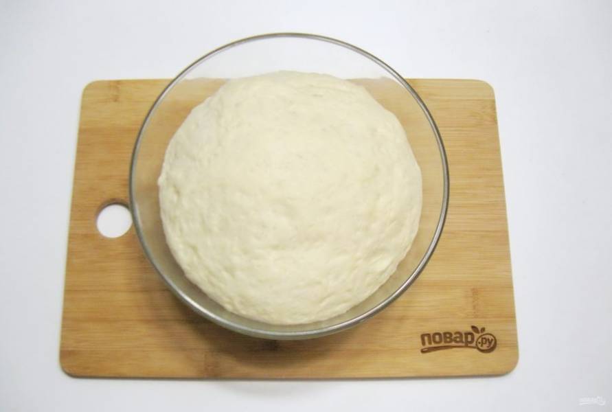 Поставьте тесто в теплое место, накрыв его пищевой пленкой. Примерно через 50-60 минут оно значительно увеличится в объеме.