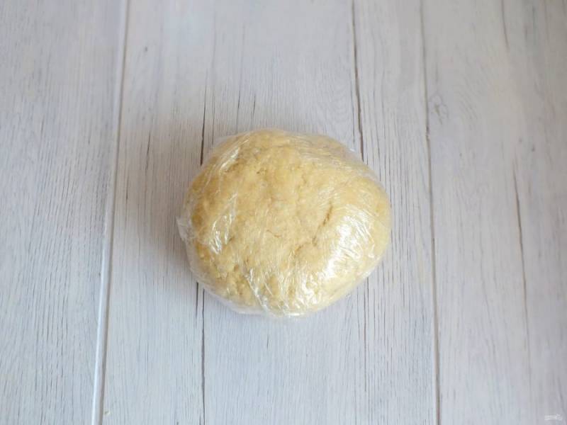 Соберите тесто в комок. Заверните в пищевую пленку и оставьте при комнатной температуре на 40 минут.