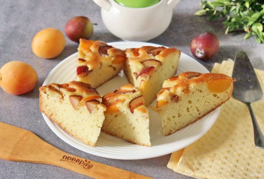 Пирог с абрикосами и сливами готов. Приятного чаепития!
