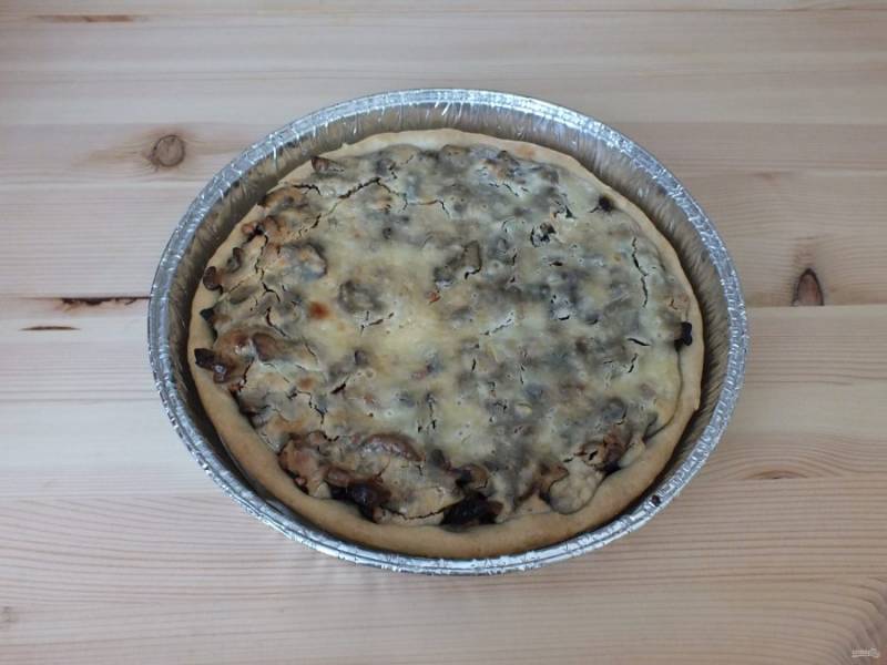 Готовый пирог достаньте из духовки. Верх должен быть покрыт румяной корочкой.