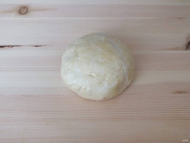 Заверните тесто в целофан и уберите в холодильник на 30 минут.