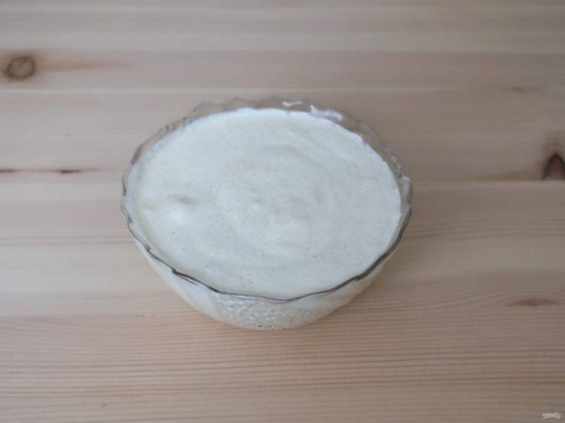 Подготовьте заливку. Смешайте сметану с сахаром.