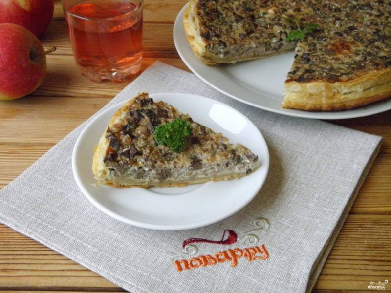 Этот вариант пирога является очень удобным способом утилизации вчерашних продуктов. Все, что вам понадобится, это вчерашняя гречка, кусочек отварной печени, яйца и сметана.