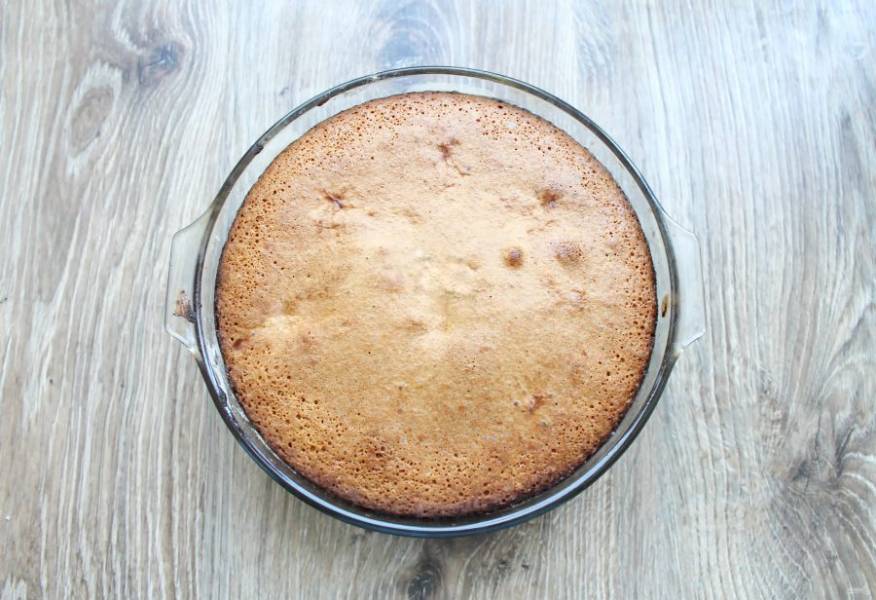 Поставьте в горячую духовку и выпекайте в течение 45 минут. Готовый пирог остудите и при желании посыпьте какао-порошком.