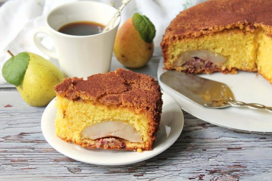 Пирог с грушей и брусникой готовится просто и быстро. Получается очень вкусно! Ведь в нем пышный бисквит, нежные груши с начинкой из брусники и орехов. Так что берите рецепт на вооружение!