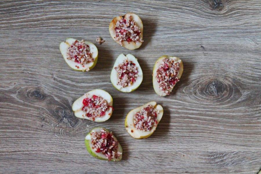 Заполните сердцевину груш начинкой из брусники и орехов.