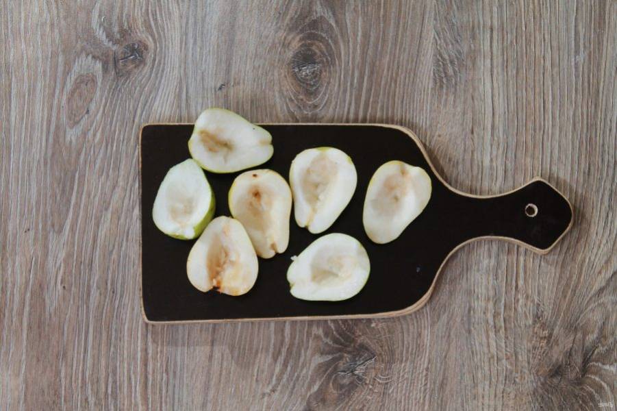 Груши разрежьте пополам, удалите серединку и хвостики.