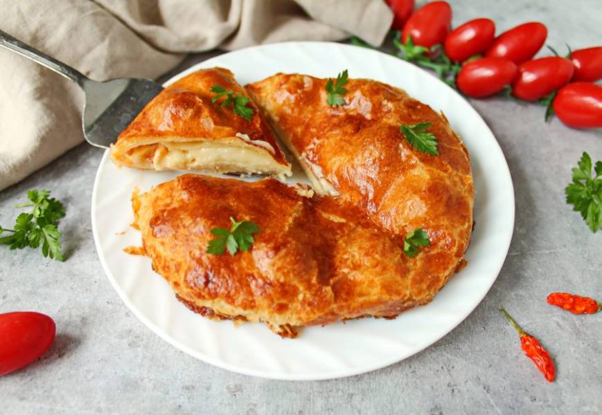 Пирог с камамбером и помидорами черри