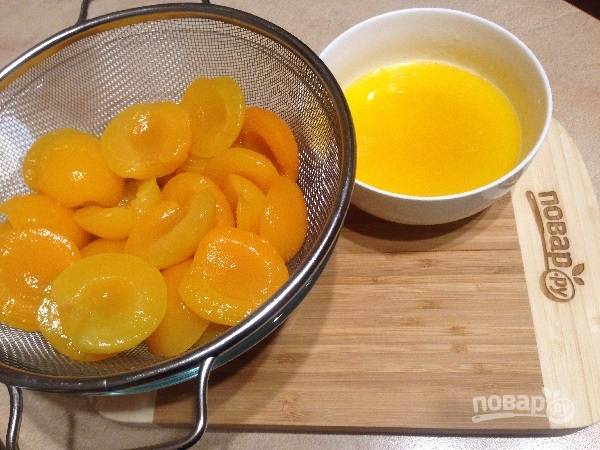 1. Абрикосы откидываем на сито, пусть стечет весь сироп. Сливочное масло растопим и остудим.