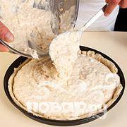 Раскатать тесто по форме пирога. Выложить заправку поверх основы. Нагреть духовку до 200 градусов. Выпекать в течении 15-20 минут.