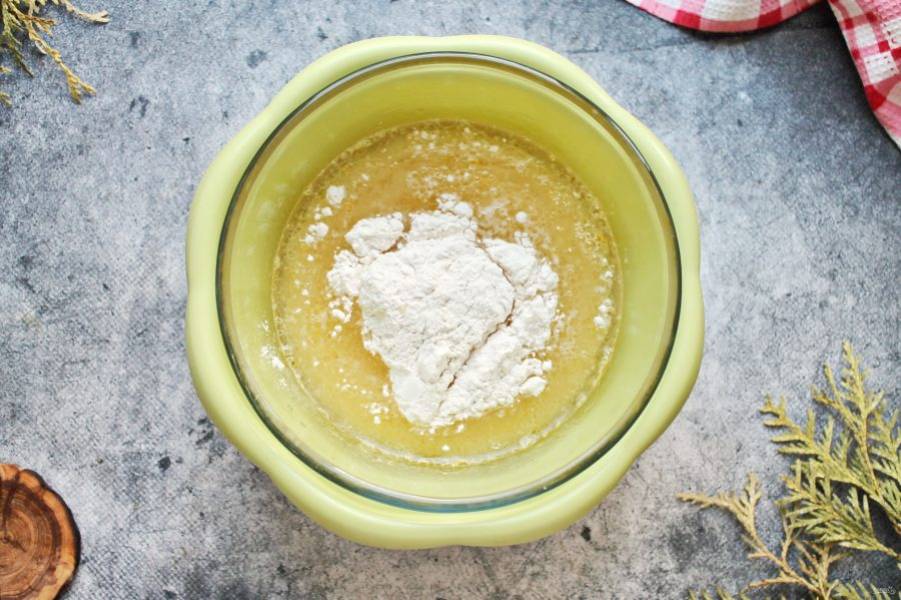 Муку просейте и частями всыпайте в миску, вымешивая тесто. Вымешивайте тесто в течение 7-10 минут до мягкого, гладкого теста.