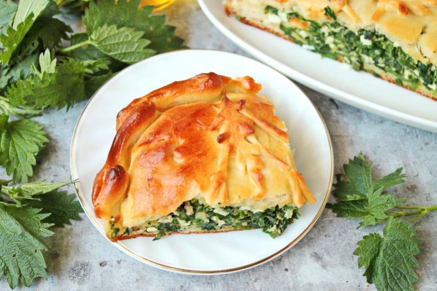 Многие из нас ели хотя бы раз щи с крапивой и мало кто догадывается, что она прекрасно ведет себя в выпечке. Она полезна, не теряет цвет при тепловой обработке и делает начинку сочной.