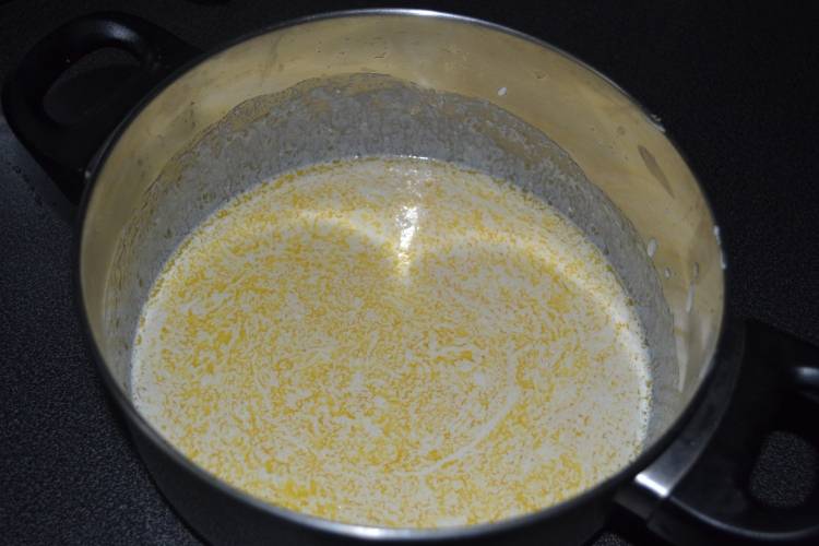 3. Масло надо немного остудить, а затем соединить с кефирно-сметанной смесью.