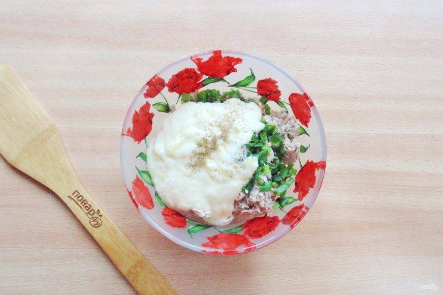 Еще немного посолите и перемешайте начинку для пирога.