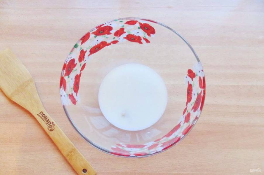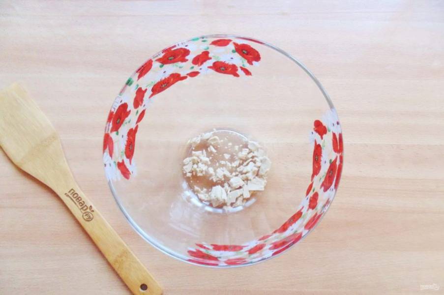 Начните с теста. В миску раскрошите свежие дрожжи. Сухих потребуется 7-8 грамм.