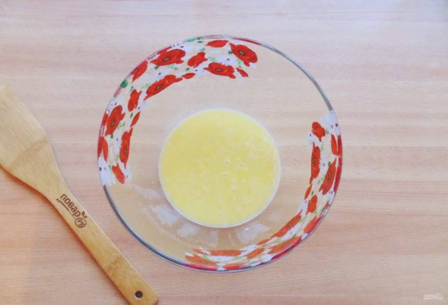 Сливочное масло растопите, немного охладите и влейте в миску.