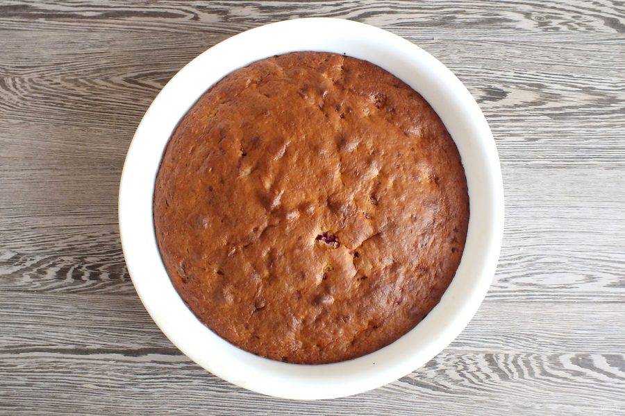 По истечении времени проверьте готовность пирога деревянной шпажкой. Она должна быть сухой. Охладите немного пирог, после подавайте к столу.