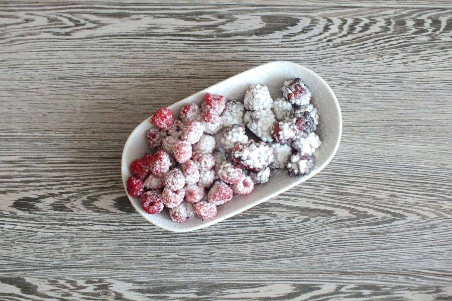 Ягоды заранее размораживать не следует. Ежевику и малину слегка присыпьте крахмалом.