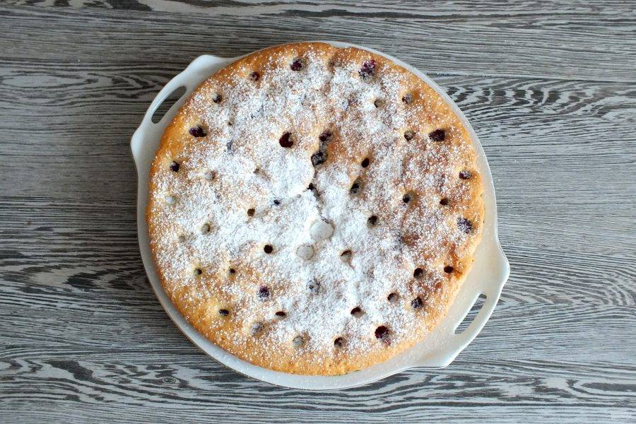 Пирог переложите на блюдо, предварительно снимите с него бумагу. Охладите и по желанию присыпьте сахарной пудрой.