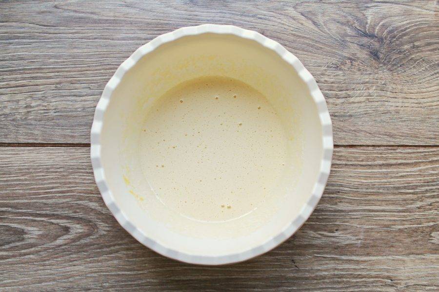 Добавьте в яичную массу сметану и снова взбейте до однородности.