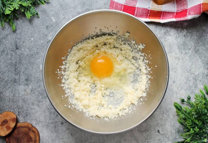 Вбейте к маслу яйцо.