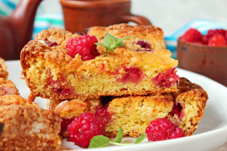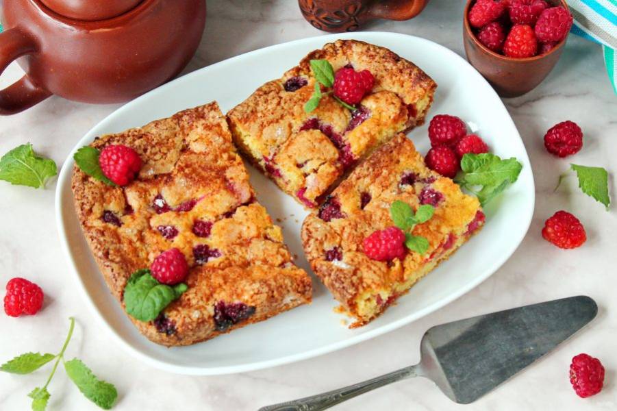 Пирог с малиной простой
